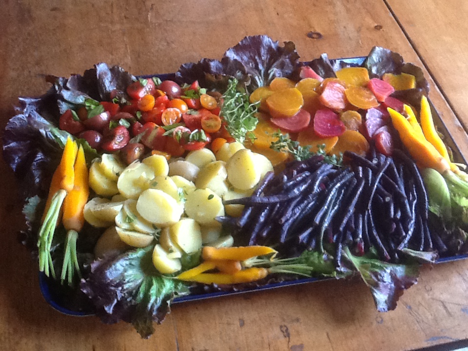 A show-stopping array of Big Red Farm veggies! Preparation and photo by Sue Anne Morrow |